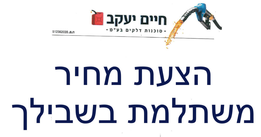 חברתינו מאפשרת ללקוחותיה הצבה של מערכת תידלוק וגנרטורים להשכרה או לקנייה ואספקת סולר לאתרים חדשים לפני בנייה או לאתרים קיימים שלא התחברו לחשמל.